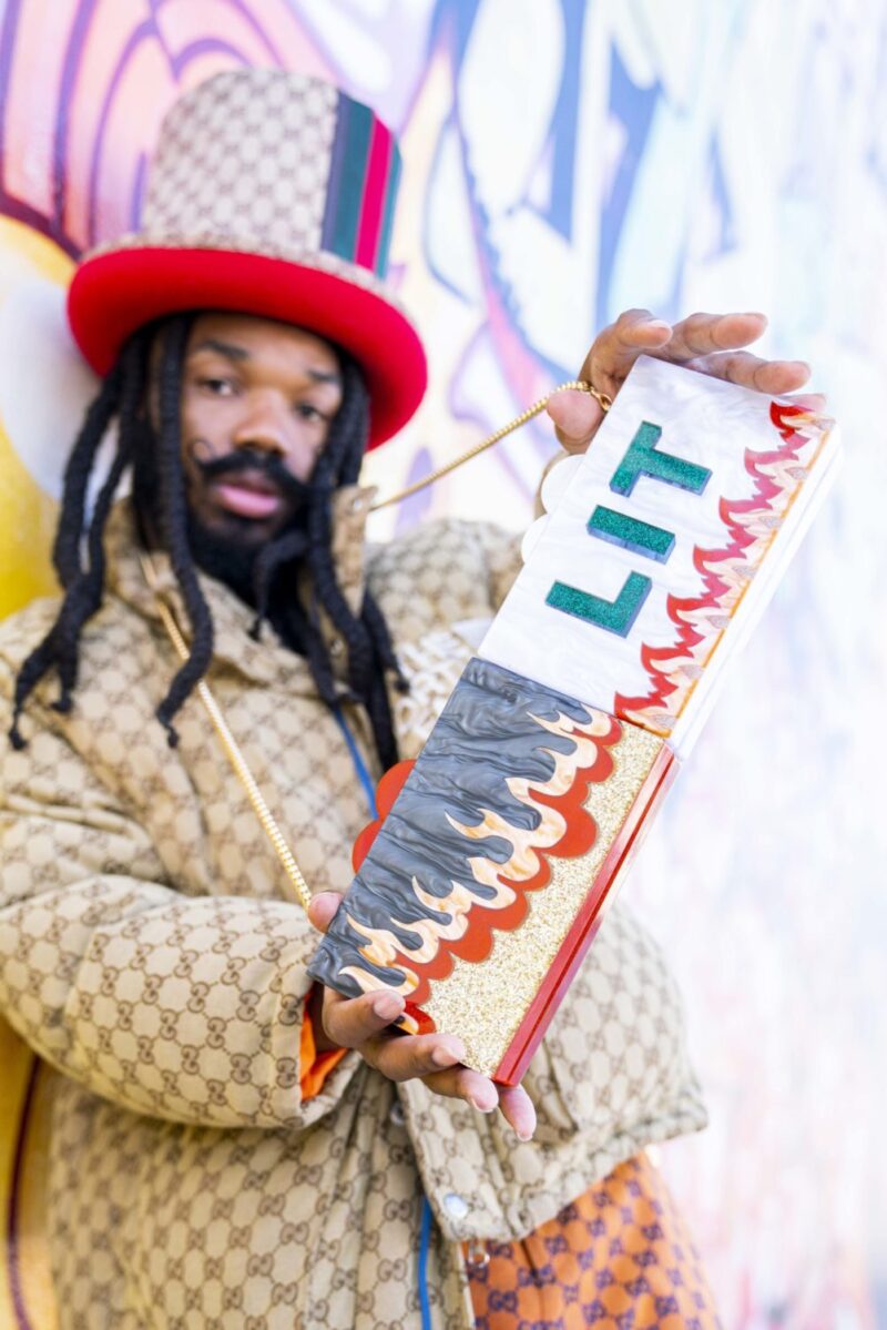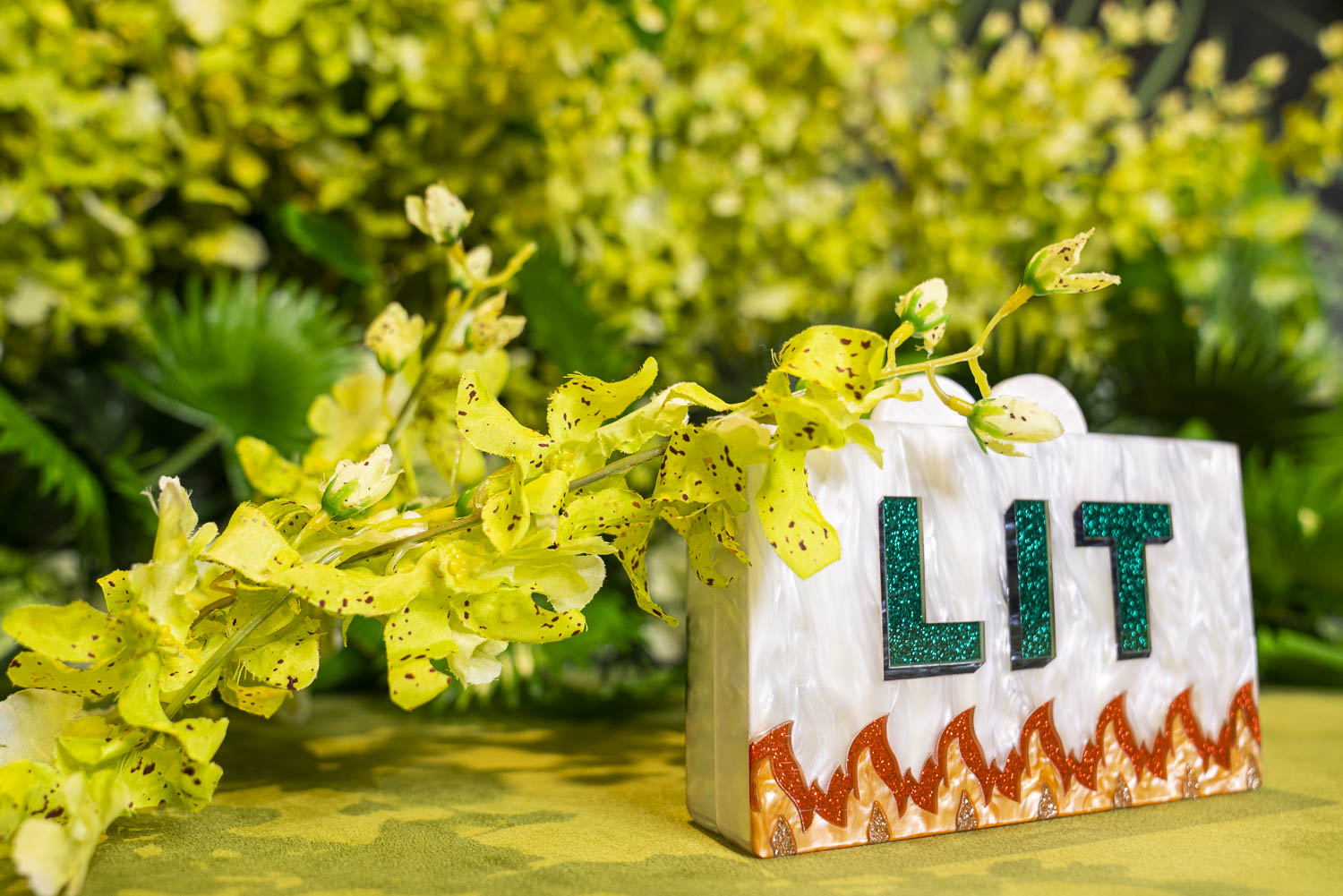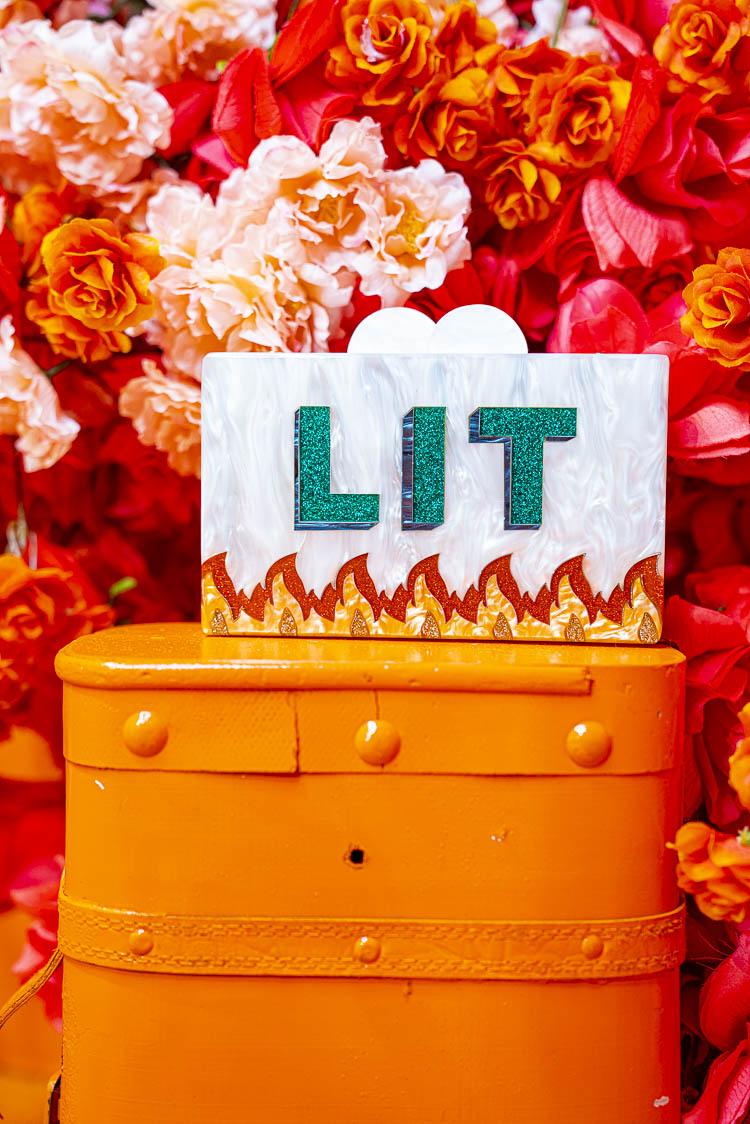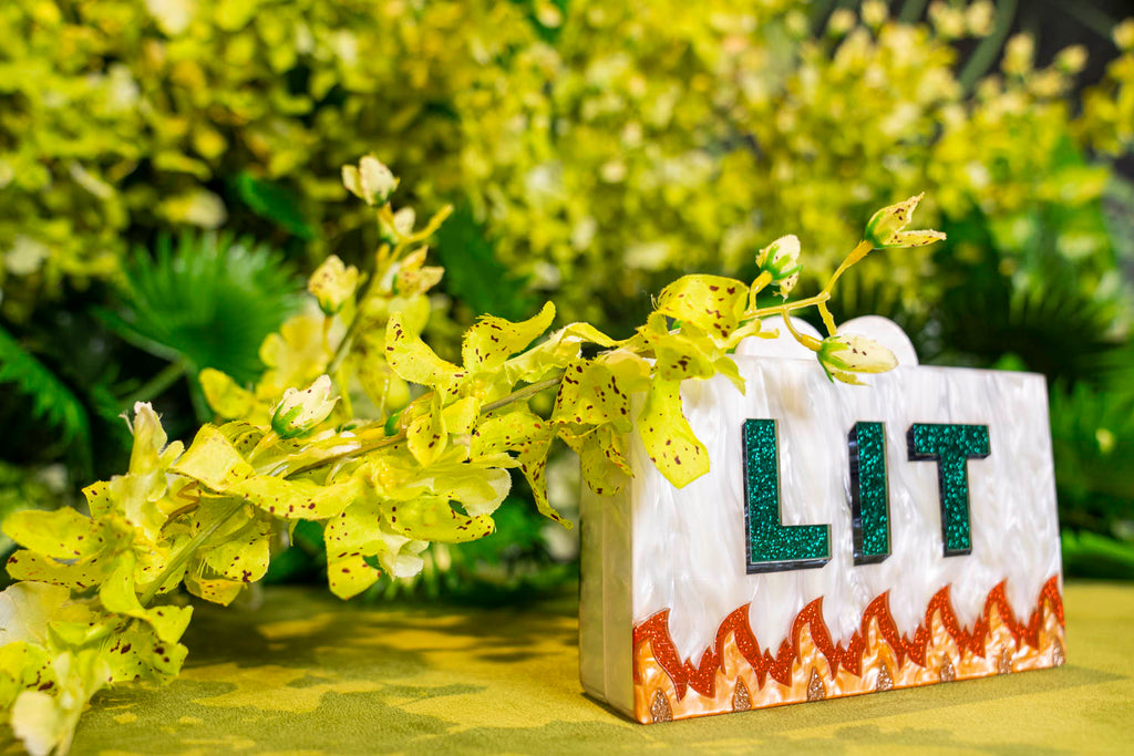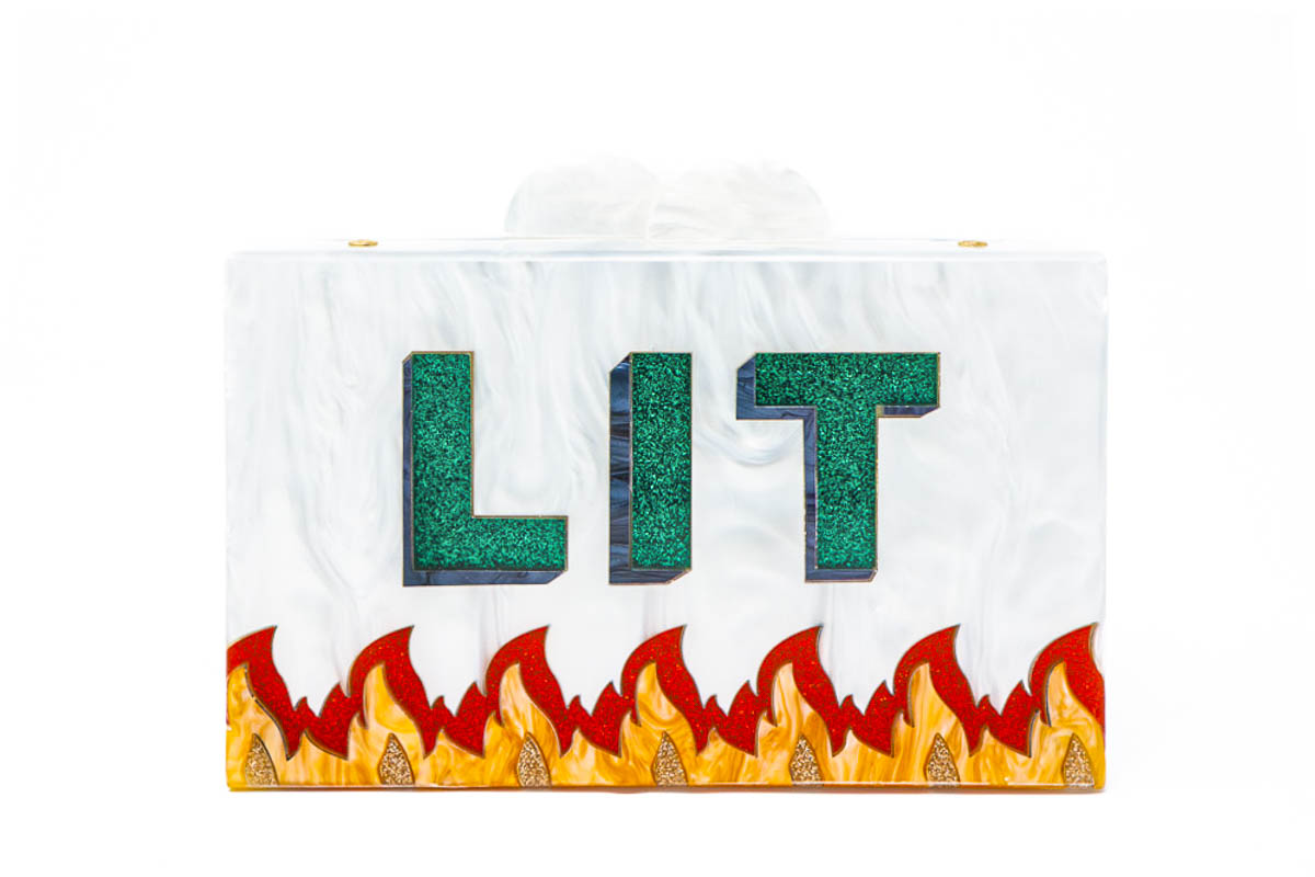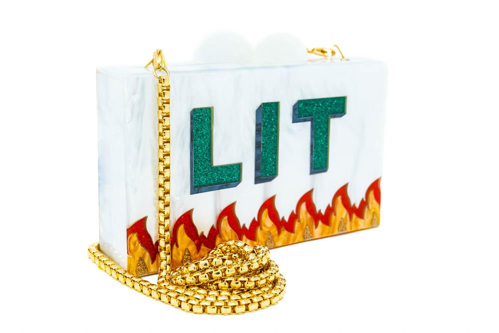 Artist Elizabeth Suttons perfect day to night clutch with detachable gold plated chain. The perfect weight and size with unique and vibrant designs. Beautifully finished with plush velvet lining. Presentation packaging included.